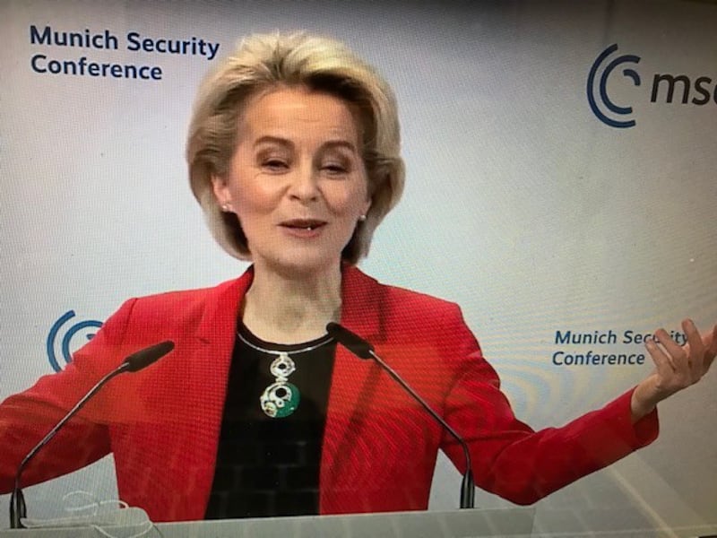 冯德莱恩说,“我们正面临着一个公然改写我们国际体系规则的企图,只需阅读俄罗斯和中国领导人最近发表的公报就可以知道,他们追求一个新时代,正如他们所说,以取代现有的国际秩序,他们更喜欢最强权统治而不是法治,恐吓而不是自决,胁迫而不是合作。我们仍然希望和平将占上风,让外交带我们达到目的。”